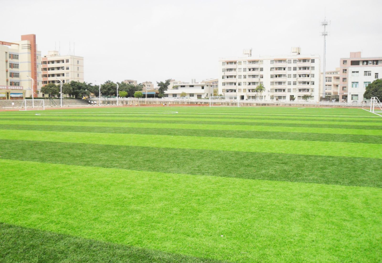 *人造草運動場地整體布局美觀、使用率高,壽命可達10年以上,且耐用易保養(yǎng),可全天候持續(xù)使用。 *人造草材質環(huán)保,成品施工,工期固定且較短,品質較易掌握,驗收簡單,不需太多專業(yè)知識。